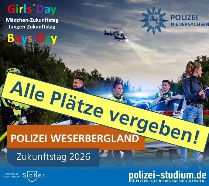 Bitte Terminabsprache formlos über nachwuchsgewinnung@pi-hm.polizei.niedersachsen.de